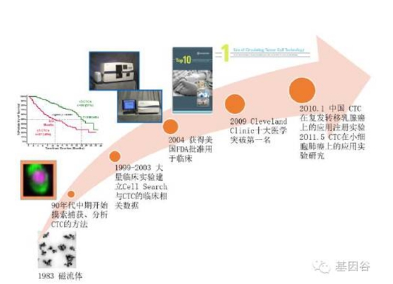 1、免疫荧光法(IF) 实体肿瘤细胞一般均为上皮来源,细胞内会表达角蛋(cytokeratin, CK)或其他肿瘤标示物(如HER2)。借助免疫荧光染色,可对来自实体瘤CTC 中的瘤标进行识别,从而达到检测CTC 的目的。这也是目前检测CTC 的最常见方法。缺点是,在CTC 形成过程的间质化(EMT)阶段,大量的CK 会降解,从而在CTC 检测过程中出现因―看不见‖而造成的假阴性。 2、荧光原位杂交(FISH) 荧光原位杂交,是根据已知细胞内特异的DNA 序列,以利用荧光标记的特异寡聚核苷酸片段作为探针,与细胞内的基因组中DNA 分子杂交,检测该特异基因序列的存在与丰度。FISH 技术与CTC结合,不仅可以检测CTC 表面标志物,也可以检测CTC 细胞内部的标志物及核型等。 3、RT-PCR 反转录PCR 提取组织或细胞中的总RNA,以其中的mRNA 作为模板,采用引物和逆转录酶将mRNA反转录成cDNA。再以cDNA 为模板进行PCR 扩增,而获得目的基因或检测基因表达。RT-PCR 使RNA 检测的灵敏性提高了几个数量级,使一些极为微量RNA 样品分析成为可能。结合RT-PCR 可同时对若干个基因的表达进行检测。位点特异性PCR 技术可用于检测CTC 携带的驱动基因的突变情况。 4、二代测序 CTC 数量少,直接进行二代测序难度大。需要将单细胞的DNA 扩增后,再利用二代测序检查基因序列。比较有代表性的是多重退火和成环循环扩增技术和多重臵换扩增(MDA)。但是,目前单细胞测序的技术仅仅停留在实验室阶段,未来向市场推广还有很长的路要走。而且由于肿瘤细胞的异质性,单细胞测序是否有代表性还需要更多的科学研究来证明。 CTC 检测技术与检测平台简介